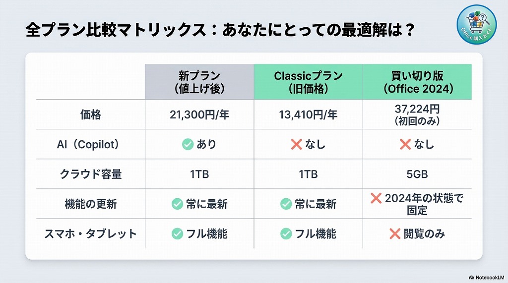 結論まとめ|Microsoft 365の値上げ対策は「Classicプラン」か「買い切り」